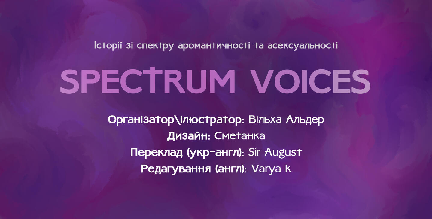 Назва “Голоси Спектру” - гра слів, яка підкреслює як різноманітність досвідів, так і їхнє право бути почутими.Аромантичність як спектр - це про відсутність і/або слабкий потяг саме до романтичних стосунків.